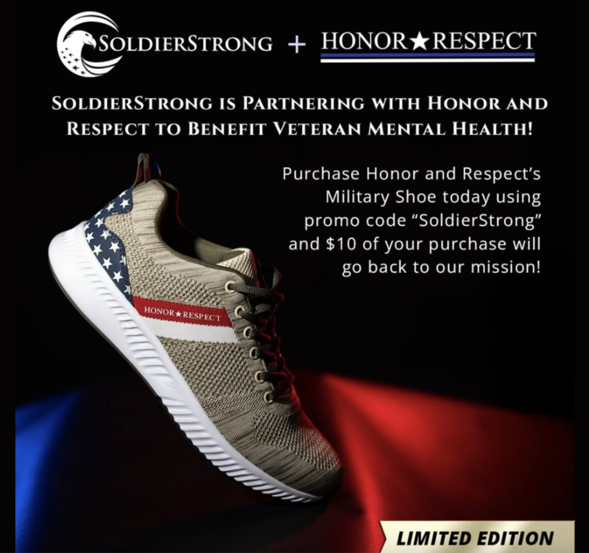 Founded by U.S. Air Force veteran Ron Slagle and his family, Honor and Respect creates one-of-a-kind athletic shoes to support our nation’s heroes. Right now $10 from every purchase of their Military Shoe will be donated to SoldierStrong’s BraveMind initiative when you use promo code “SoldierStrong” at checkout.