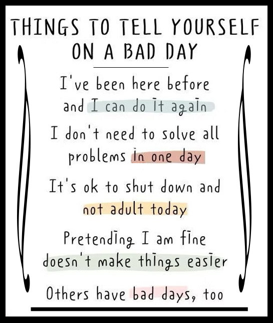 It's true—everyone has bad weeks, and it's perfectly normal to feel overwhelmed, frustrated, or disappointed when things don't go as planned. Learning to be kind to yourself is an important part of coping and moving forward.