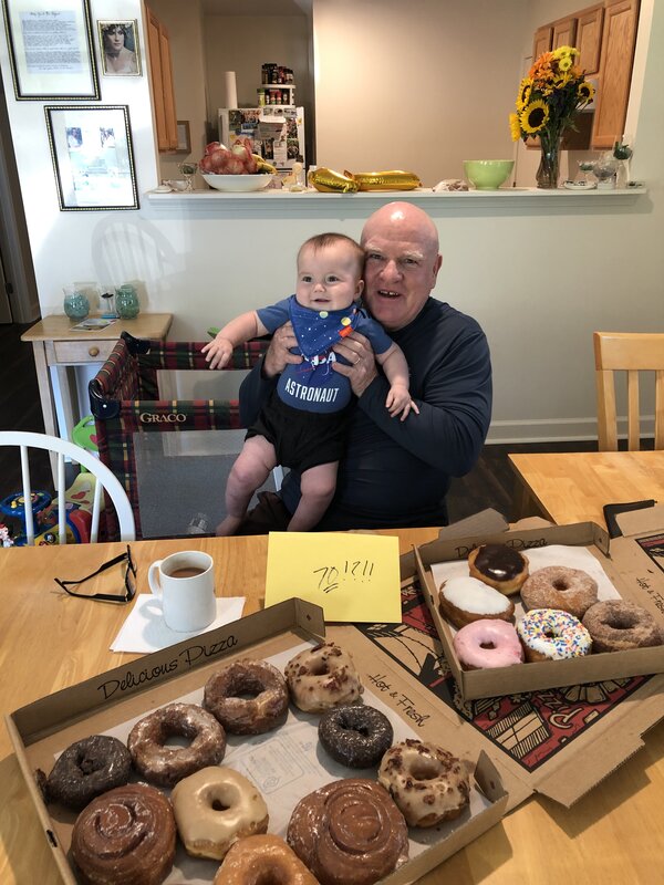 Donuts. Donuts. Donuts. I wonder if they have anything to do with my current weight challenges? As you can see from the pictures, even my granddaughter made me a "Donut Trophy", and my grandson wasn't even a year old and yet knew to bring Pop Pop, donuts for his birthday!