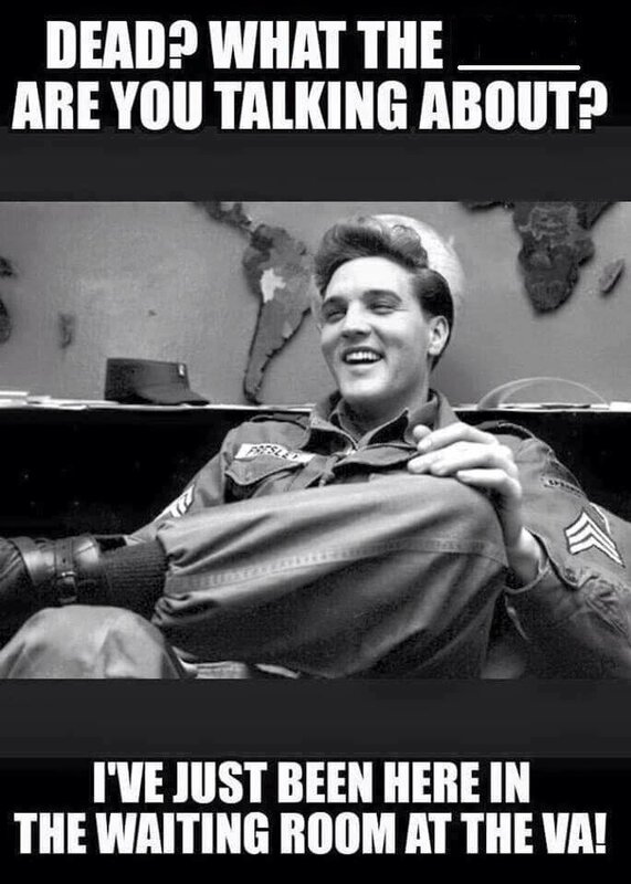 Is Elvis really dead? Those of us who use the VA for our healthcare can relate to this! In actuality, My VA medical center is very good about keeping appointments on time. Occasionally they lag behind but not too often.