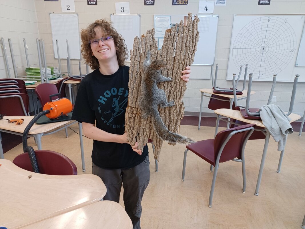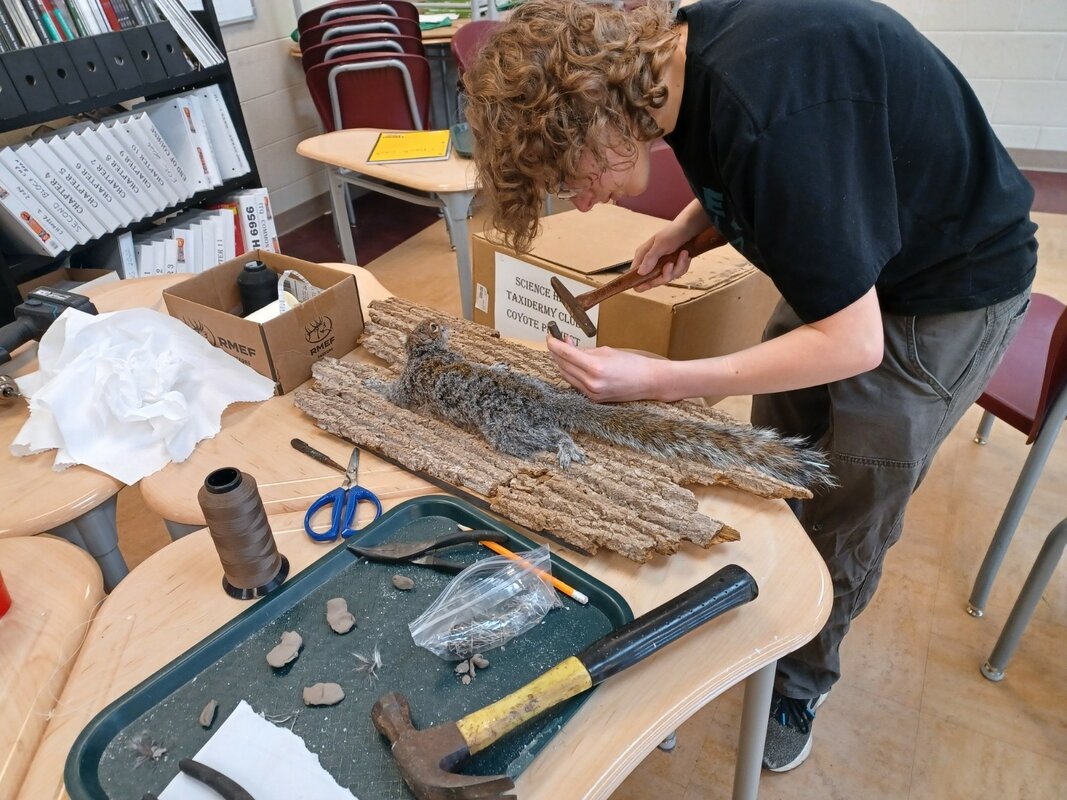 Taxidermy Club member working on her squirrel today. Four members were supposed to come to the mounting. One notified me she couldn't make it and the other was a no show. I don't have authorization to post photos of the other student. The one in these photos I have a parental release (she is eighteen now so I really only need hers now). She is an original member of the club when I started the club in 2022.