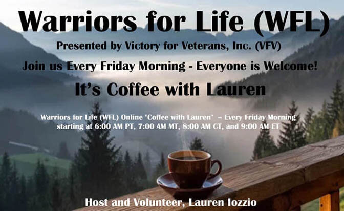 Warriors for Life (WFL) Online "Forever Forward!" edition presented by Victory for Veterans, Inc. (VFV) — Thursday (TONIGHT), January 22, 2026, @ 4:30 PM PT, 5:30 PM MT, 6:30 PM CT, & 7:30 PM ET