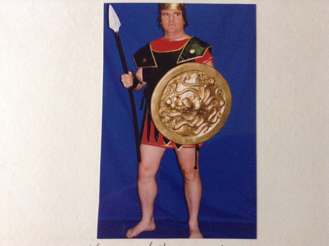 A long time ago, I was in a photo shoot where we wore Uniforms from different times in History. I had to wear this Roman Centurion get up. Kathy put this photo in our Scrapbook.