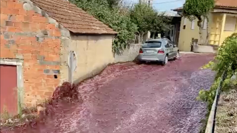 There is so much surplus red wine in Portugal, it's flooding the streets. That's one way of deciphering the incredible scene that unfolded in São Lourenço do Bairro, a small town where millions of liters of wine recently overwhelmed the roads.